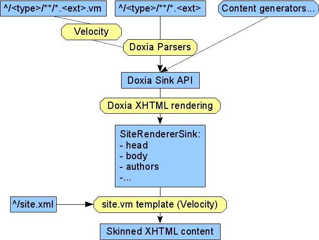 Documents can be dynamically generated with Doxia Sink API, like Maven reports, or simply read from static files written in markup supported by Doxia Parsers, optionally preprocessed by Velocity if their file names end with .vm.